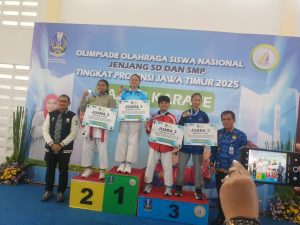 Atika Uzlifatul Jannah M.S., siswi kelas 8-I SMPN 2 Jombang, merasa bangga setelah meraih Juara 1 Karate Putri pada ajang Olimpiade Olahraga Siswa Nasional (O2SN) Tingkat Provinsi Jawa Timur 2025. Dengan medali di leher dan piagam penghargaan di tangan, Atika menunjukkan senyum kemenangan hasil kerja keras dan latihan disiplin yang dijalaninya setiap hari.